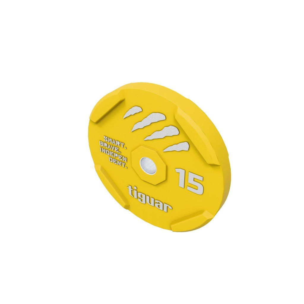 Bumper gumový kotouč 15 kg Tiguar – žlutý