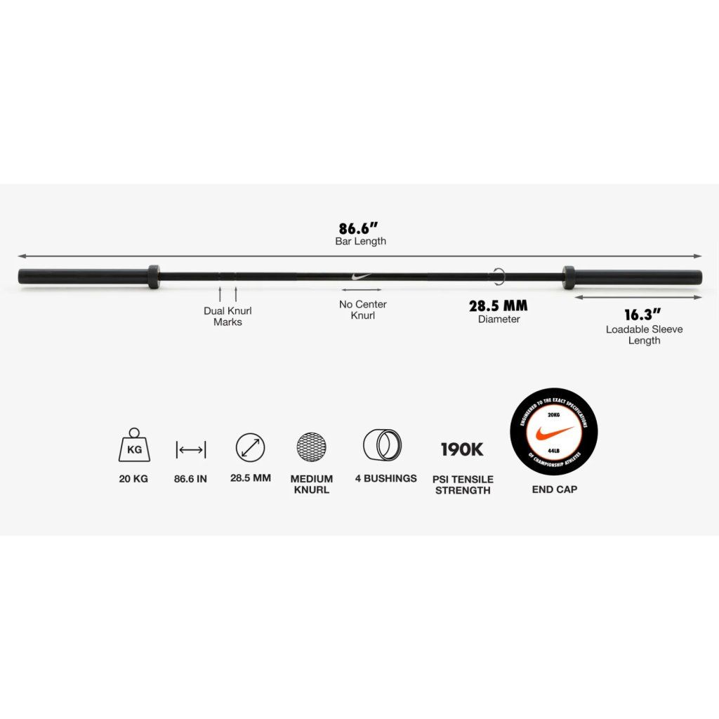 Olympijská osa Nike 20 kg – černý chrom