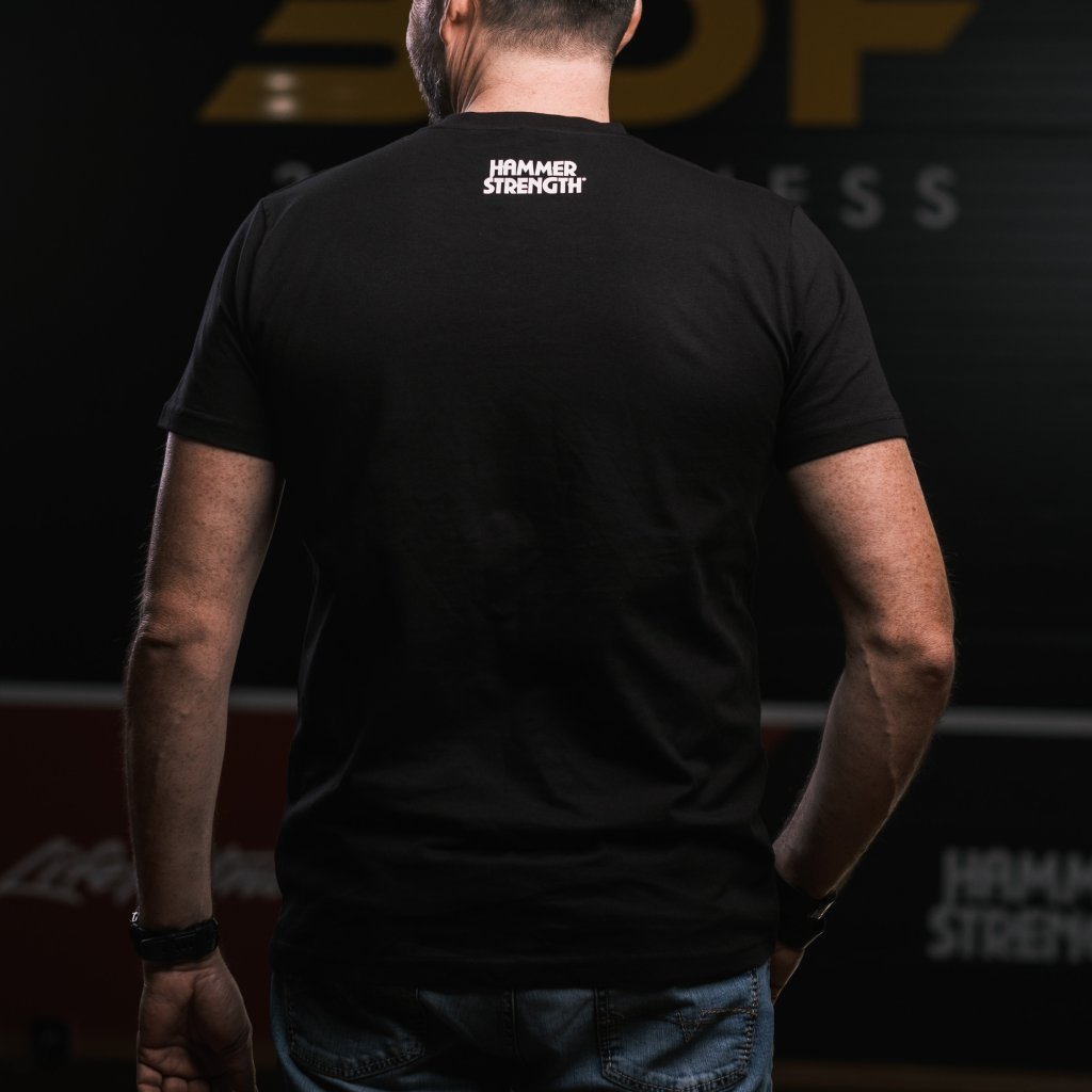 Pánské tričko HAMMER STRENGTH v černé barvě je vyrobené z prémiové bavlny (95%) s příměsí elastanu (5%), což mu dodává skvělou elasticitu a udržuje jeho tvar i po opakovaném praní. Díky protižmolkové úpravě a maximální prodyšnosti poskytuje dlouhodobý komfort při nošení.