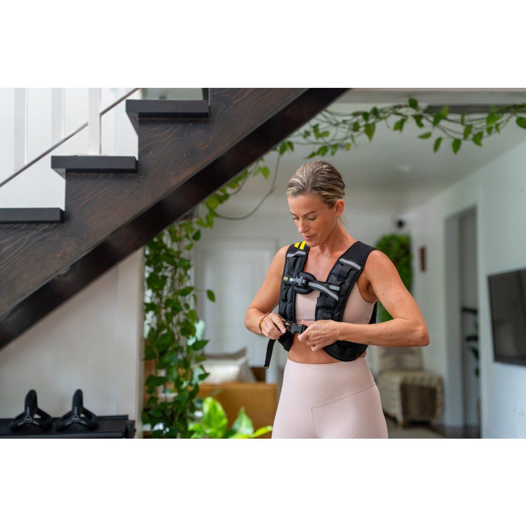 Hmotnost 4,5 kg je rozložena rovnoměrně po celé ploše vesty, což minimalizuje tlak na ramena a záda. Anatomický střih umožňuje plný rozsah pohybu a komfort i při delším tréninku. Vesta pevně sedí na těle a nepřekáží ani při rychlých změnách směru.